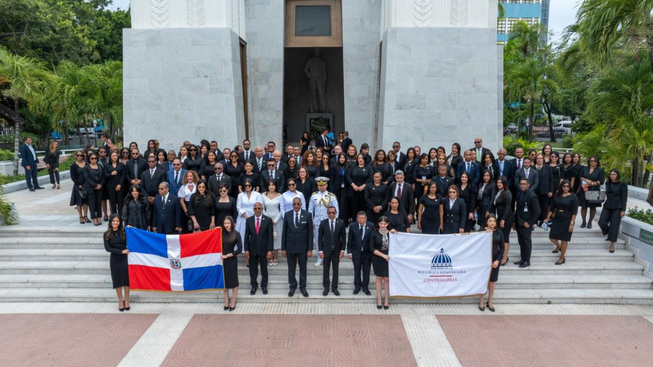 Posterior a la misa en la Catedral Primada de América, el contralor Santana García encabezó una ofrenda floral ante el Altar de la Patria, en compañía de colaboradores de la institución, con el propósito de honrar el legado de integridad y transparencia de los patricios.