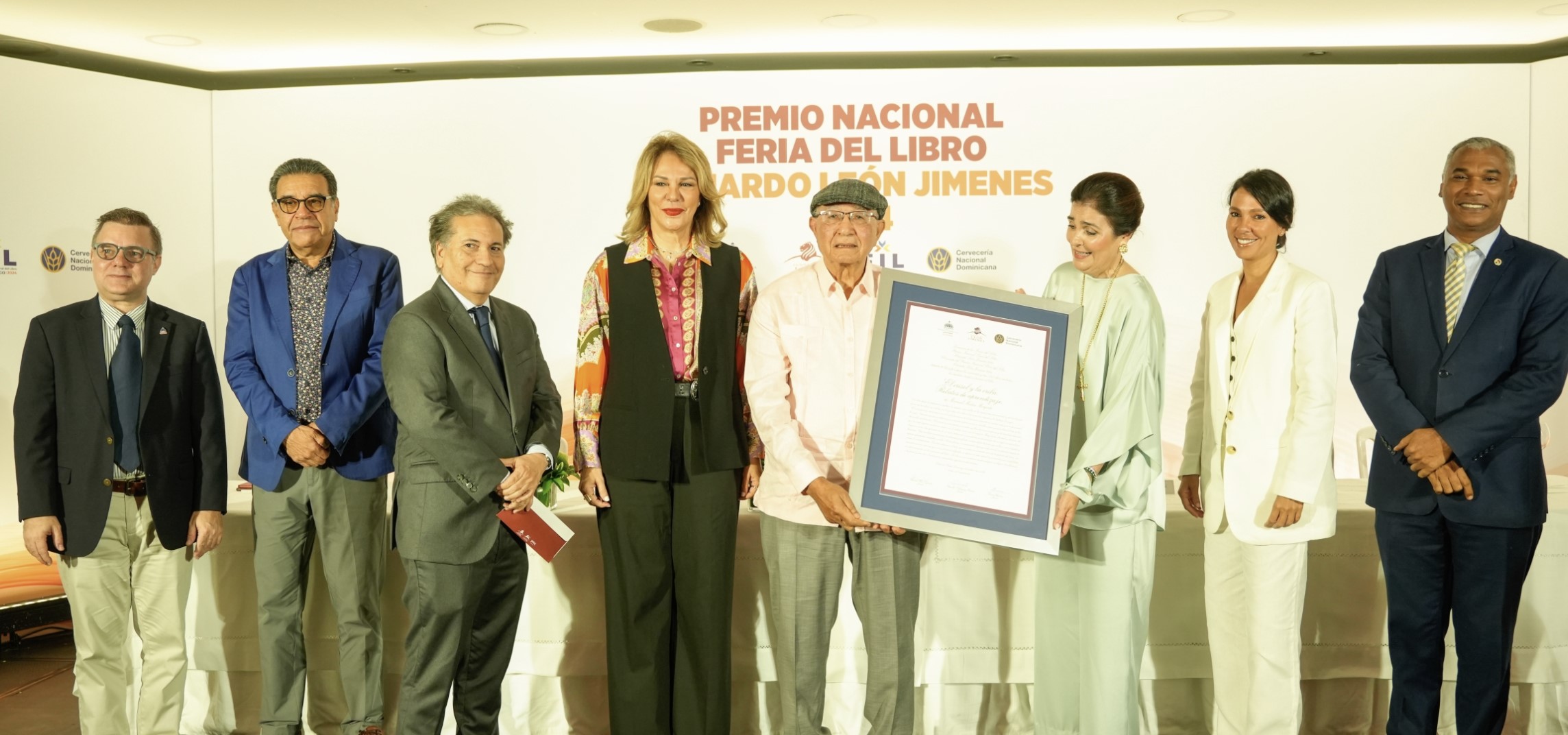 Santo Domingo. – En el marco del ciclo pre inaugural de la Feria Internacional del Libro Santo Domingo 2024, la Fundación León Jimenes y el Ministerio de Cultura galardonaron a Manuel Matos Moquete con el Premio Nacional Feria del Libro Eduardo León Jimenes 2024, por su obra “El crisol y la criba. Relatos de aprendizaje”.