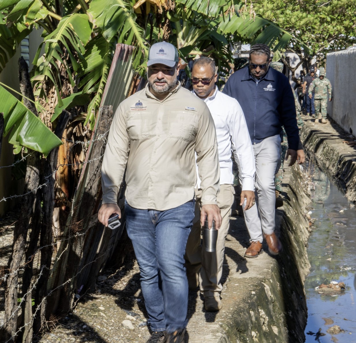 El ministro realizó el segundo recorrido acompañado por los vicealmirantes Agustín Morillo, comandante general de la Armada Dominicana; Luis Lee Ballester, director general de Migración; el general Ángel Camacho, director del Servicio Nacional de Protección Ambiental (SENPA), y el equipo de fiscalización del Ministerio de Medio Ambiente.