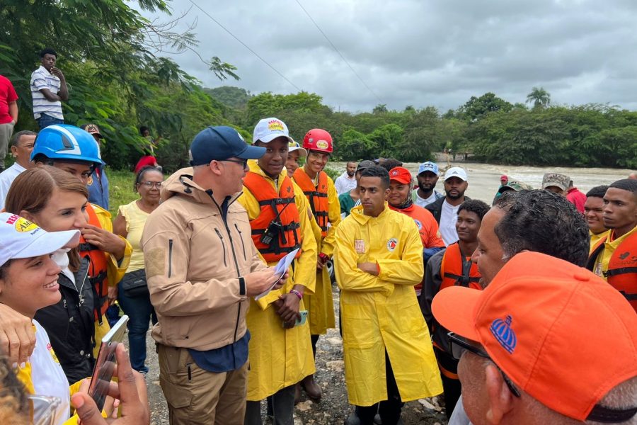 Luego visitaron el puente sobre el río El Higüero, en la comunidad de Los Pérez del municipio Villa Montellano, donde brigadas con equipos pesados retiraban los escombros para normalizar el tránsito que se había detenido por el desbordamiento.