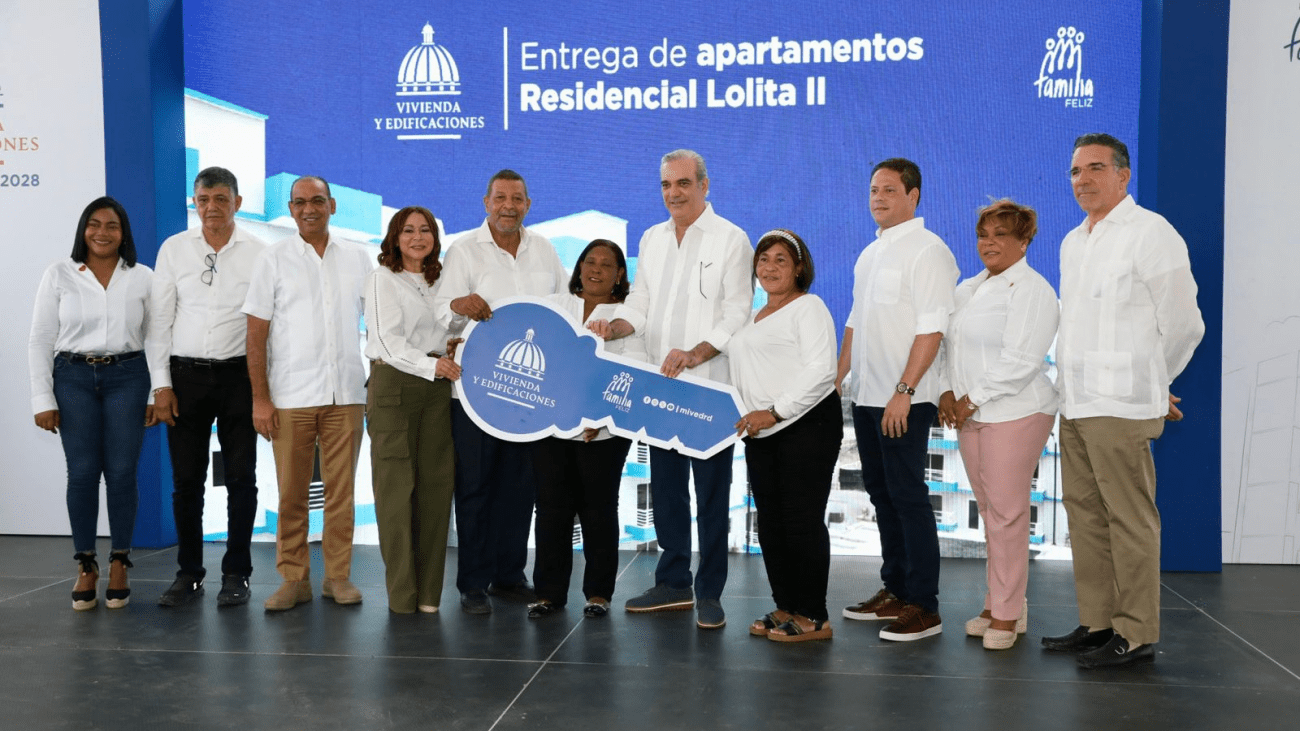 El presidente Luis Abinader encabezó este sábado la inauguración del Residencial Lolita II, en Hato Nuevo, como parte del Plan Nacional de Viviendas Familia Feliz. Allí se hizo una primera entrega de 140 nuevos apartamentos a igual número de familias, lo cual impacta de manera directa a 560 personas.