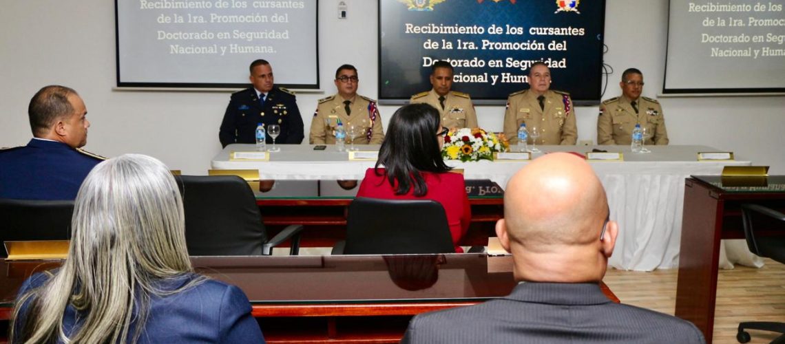 Santo Domingo, DN.- La Universidad Nacional para la Defensa “General Juan Pablo Duarte y Díez” (UNADE) del Ministerio de Defensa, a través de la Escuela de Graduados de Altos Estudios Estratégicos (EGAEE), recibió formalmente a los integrantes que conforman la primera promoción del Doctorado en “Seguridad Nacional y Humana”.